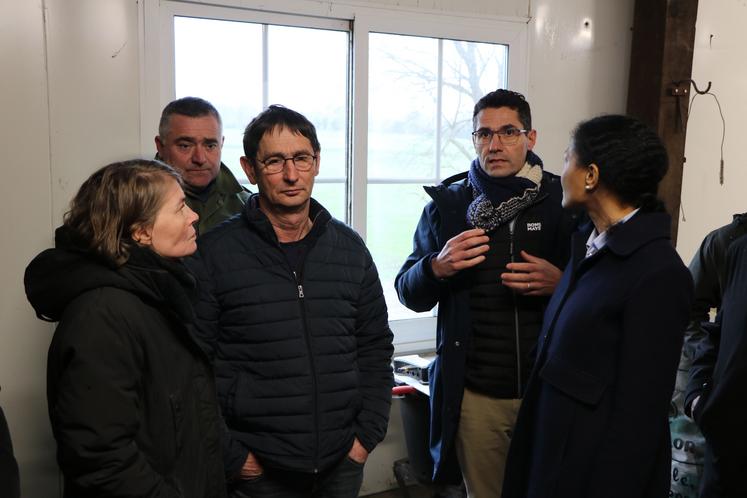 Lundi 9 février, la FDSEA a reçu Nadège Baptista, préfète de la Mayenne, sur l’exploitation de Bruno Moussay, éleveur laitier à Sacé et président de l’OP Vaubernier.