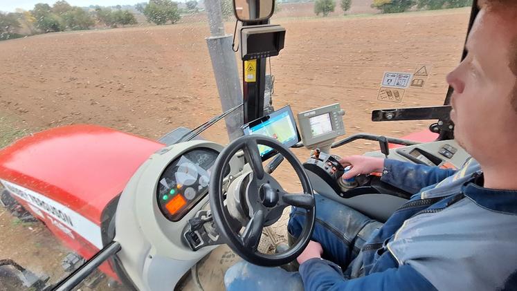 Ce mercredi 29 octobre, les semis de blé touchent à leur fin pour Denis Guilmeau et son fils Sébastien, éleveurs laitiers de 80 vaches de race Montbéliarde au Gaec de la Randouillère, à Houssay. La dernière des parcelles, de 7 hectares, est située à La Roche-Neuville. « Nous avions débuté vendredi dernier, pour une surface totale de 50 hectares », indique Denis Guilmeau en bout de champ. Cette fois, le choix a été fait de ne semer que du blé, contre moitié orge et moitié blé les années précédentes. « Ça fait deux ans qu’en rendement pour l’orge on ne s’en sortait pas très bien », explique Sébastien.