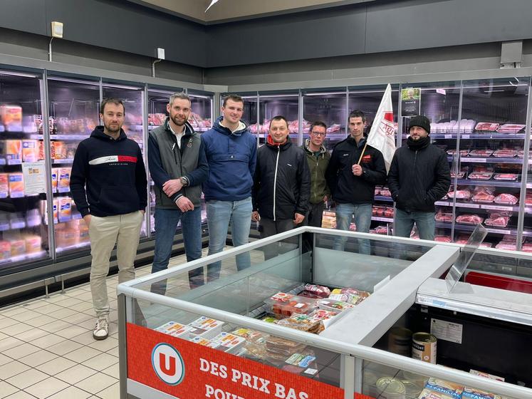 Dans l’élan de leur mobilisation à La Gravelle mercredi 14 janvier, où ils avaient contrôlé les cargaisons de près de 350 camions, les agriculteurs de la FDSEA 53 et de Jeunes agriculteurs de la Mayenne ont effectué plusieurs actions en GMS (grandes et moyennes surfaces).