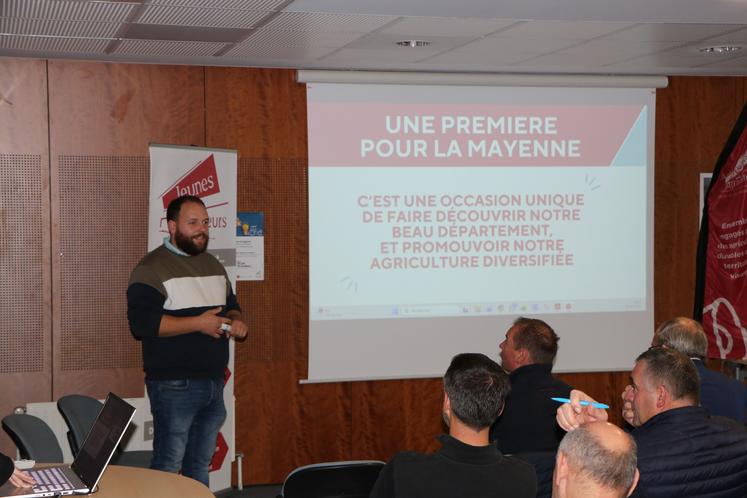 Les JA 53 sont candidats pour accueillir, en 2027 à l’Espace Mayenne (Laval), le congrès national de Jeunes agriculteurs. Étienne Dalibard, président des JA 53, a présenté le projet devant une trentaine de partenaires potentiels, vendredi 31 octobre à la Maison des agriculteurs.