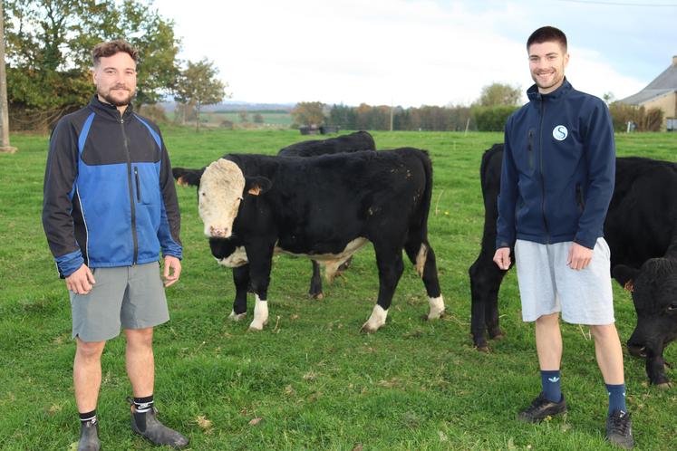 Au lieu-dit La Gandonnière, à Ambrières-les-Vallées, les fils Mauny se sont mis au vert il y a bientôt trois ans. Depuis leur installation, la ferme familiale a en effet évolué vers un modèle basé sur le pâturage tournant dynamique avec un système en monotraite et des vêlages groupés. « 100 % pâturage, 0 concentré », résument les deux frères. Installés le même jour, Quentin (29 ans) et Thibault (27 ans) ont rejoint leurs parents au 1er janvier 2023. Le Gaec est donc passé de deux à quatre associés et a changé de nom, passant du Gaec de La Gandonnière au Gaec Mauny. « On s’en sortait bien tous les deux, mais c’est vrai que l’arrivée de nos fils nous a apporté un peu plus de confort de travail », confie la maman, Nathalie Mauny (52 ans). « Passer d’un Gaec à deux avec ma femme à un Gaec à quatre avec mes fils, ça change la vie. On était à deux traites par jour.