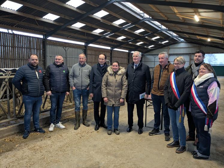 « Je suis content d’être ici, de retrouver l’ambiance du monde agricole et de sortir de l’Assemblée nationale. » Ancien ministre de l’Agriculture et Premier ministre, Michel Barnier, aujourd’hui député de Paris, était en visite sur une exploitation agricole de Saint-Hilaire-du-Maine, mercredi 17 décembre. Au côté du sénateur LR Guillaume Chevrollier, il a favorablement répondu à l’invitation de la FDSEA et des JA 53 et a ainsi pu rencontrer les trois associés gérants du Gaec de la Deulinère : Christophe Maignan, sa fille Mathilde Maignan, et Olivier Chevris. Ils y élèvent des vaches laitières, 6 000 poules pondeuses, des taurillons et des génisses à viande.