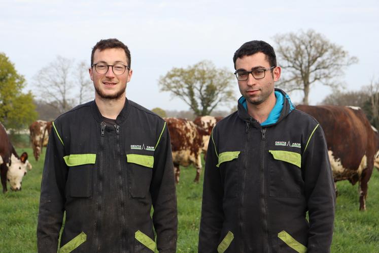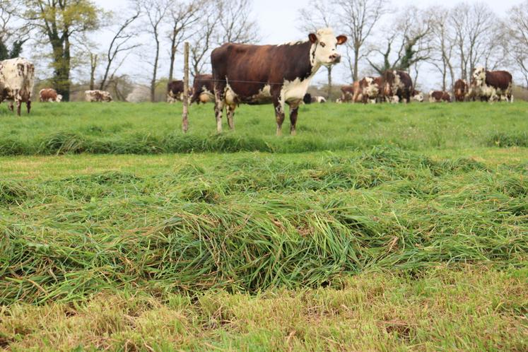 "L'idéal quand on andaine, c'est d'avoir un peu de soleil et surtout pas de rosée, comme il peut y en avoir ce matin. C'est pour cette raison qu'on va faucher cet après-midi", indiquait Jordan Cornu avant l'arrivée de Franck Jolivier, chauffeur de l'ETA Giffard à Marcillé-la-Ville, à qui le Gaec de Launay-Virolet a fait appel pour faucher ses 35 ha d'herbe. Ce matin-là, mardi 31 mars, Jordan Cornu effectue avec Franck Jolivier un tour d'horizon des parcelles à faucher. Un état des lieux nécessaire avant d'attaquer le chantier, sur les coups de 13h. "C'est assez morcelé chez nous. Nous avons des champs à Montreuil-Poulay et aux alentours. Montreuil, c'est au carrefour de quatre communes avec Champéon, Saint-Loup-du-Gast et Saint-Fraimbault-de-Prières ", précise Jordan Cornu.