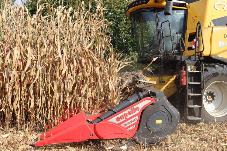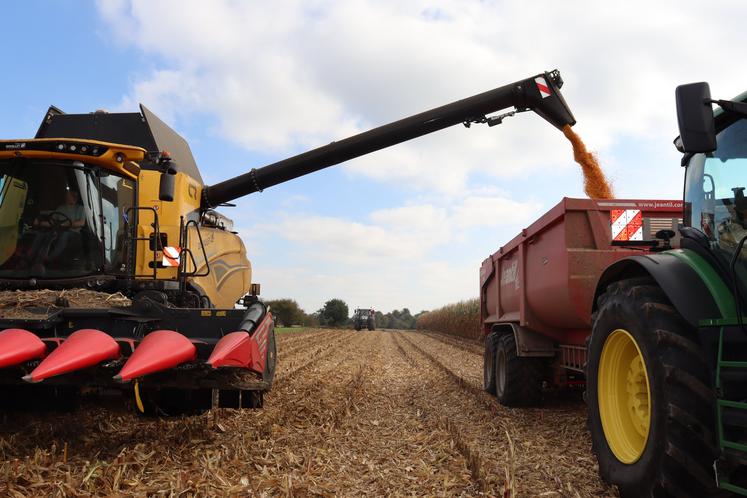 Éleveur de vaches laitières et de porcs au lieu-dit La Baudouinais à Ernée, à deux pas du terrain de motocross, Jérôme Cheux (59 ans) récoltait une de ses parcelles de maïs grain, vendredi dernier, sur le Chemin du Poirier. « Dans le secteur, ça vient de partir. Certains ont commencé en début de semaine, d’autres même un peu avant », confiait-il le 10 octobre. Sur cette parcelle, on est à 26 % en taux d’humidité. En termes de rendements, on tourne autour de 100 à 110 q/ha, selon les parcelles. C’est une très bonne année pour le maïs grain par chez nous, grâce à la pluviométrie. Nous avons eu la chance d’avoir de l’eau en temps et en heure, contrairement au sud-Mayenne ». Installé en EARL avec sa femme, Jérôme Cheux avait 30 ha de maïs grain à récolter.