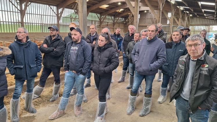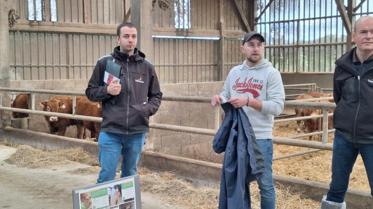 « Vu les chiffres qu’il m’avait annoncés, je savais que ça tenait la route. Mickaël est un éleveur très performant. » Tout comme la quarantaine de participants à l’AG de Mayenne Limousin mardi 3 février, le président du syndicat de race Franck Houdmon n’a pas manqué de souligner le bon travail de Mickaël Roncin, éleveur installé à Villaines-la-Juhel. Après une matinée consacrée à la partie statutaire (lire encadré), les agriculteurs présents ont pu visiter son exploitation et échanger avec Vincent Bridier et Alain Prioux, de Seenovia, autour de deux thématiques : le vêlage 2 ans et l’engraissement de jeunes bovins lourds.